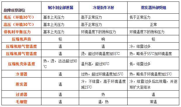 Ø、制冷循環(huán)系統(tǒng)堵塞,毛細管或干燥過濾器堵塞后,流入蒸發(fā)器的液體制冷劑減少,制冷量下降。