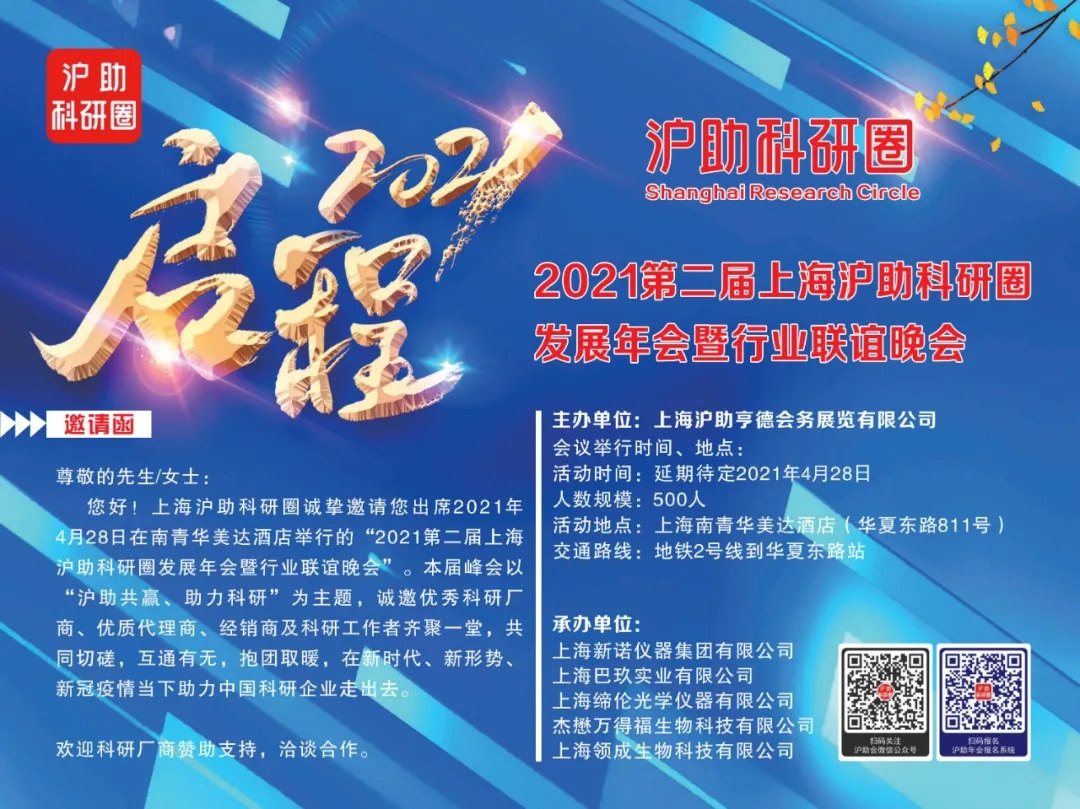 2021第二屆上海滬助科研圈發(fā)展年會(huì)暨行業(yè)聯(lián)誼晚會(huì)定于2021年4月28日在上海南青華美達(dá)酒店舉行。本屆峰會(huì)以“滬助共贏、助力科研”為主題,邀請(qǐng)了優(yōu)秀的科研廠商、優(yōu)質(zhì)代理商、經(jīng)銷商及科研工作者齊聚一堂,共同切磋,互通有無,在新時(shí)代、新形勢、疫情當(dāng)下助力中國科研企業(yè)走出去...