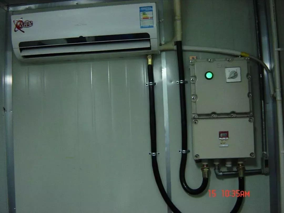 工業(yè)防爆空調(diào)保持普通空調(diào)基礎(chǔ)上,對電氣系統(tǒng),包括壓縮機(jī)、風(fēng)機(jī)、電氣線路進(jìn)行防爆處理??刂凭€路采用以光耦固態(tài)繼電器為核心的電氣制系統(tǒng)進(jìn)行整體防爆,原保持原來空調(diào)的基本功能下,簡化結(jié)構(gòu),簡化操作,使設(shè)備在性混合氣體環(huán)境中能安全使用。