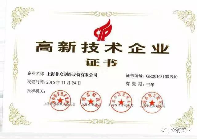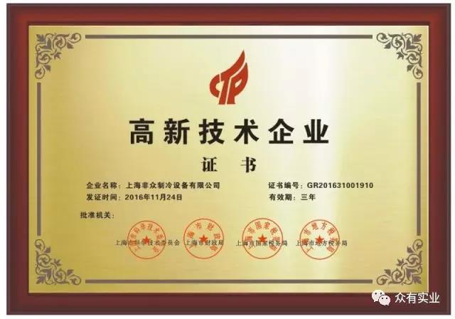 獲得高新技術(shù)企業(yè)認(rèn)證,證明了非眾制冷在本領(lǐng)域中具有較強(qiáng)的技術(shù)創(chuàng)新能力、高端技術(shù)開(kāi)發(fā)能力。