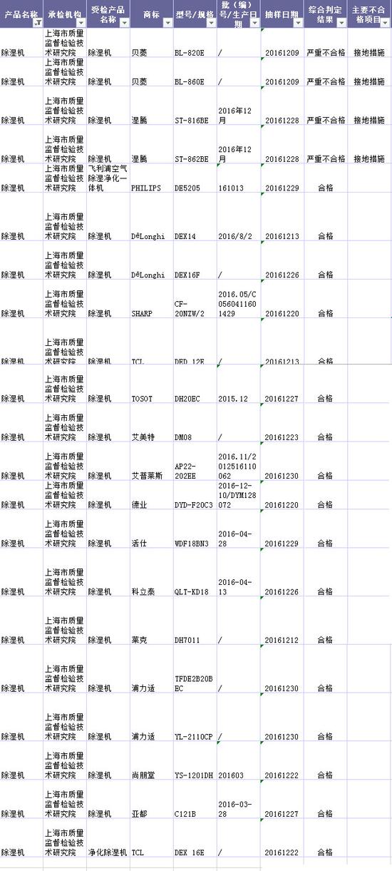 本次抽查的除濕機品牌包括貝菱、濕騰、PHILIPS、DēLonghi、SHARP、TCL、TOSOT、艾美特、艾普萊斯、德業(yè)、活仕、萊克、科立泰、尚朋堂、浦力適和亞都等21批次產品,其中,貝菱和濕騰旗下的兩款除濕機在抽查中檢測發(fā)現(xiàn)產品嚴重不合格,主要不合格項目為接地措施。