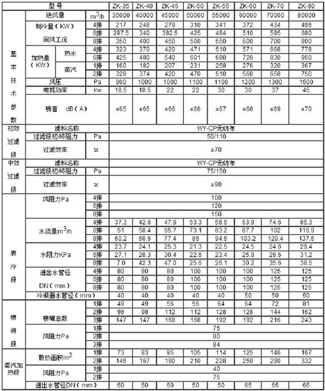 zhngyou/眾有組合式空調(diào)主機技術(shù)規(guī)格: